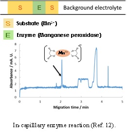 Capillary electrophoresis has several advantages in trace analysis because of the high efficiency, high speed, and small amounts of samples. Especially, in biochemical analysis, trace analysis is essential because the sample amounts are frequently very small. We have developed several methods based on capillary electrophoresis for the determination of anti-cancer drug (8), multidrug resistant protein (9), glycoprotein (10), and lignin-degraded enzymes (11,12). We are also interested in the recognition of a specific molecule by capillary electrophoresis (13).
